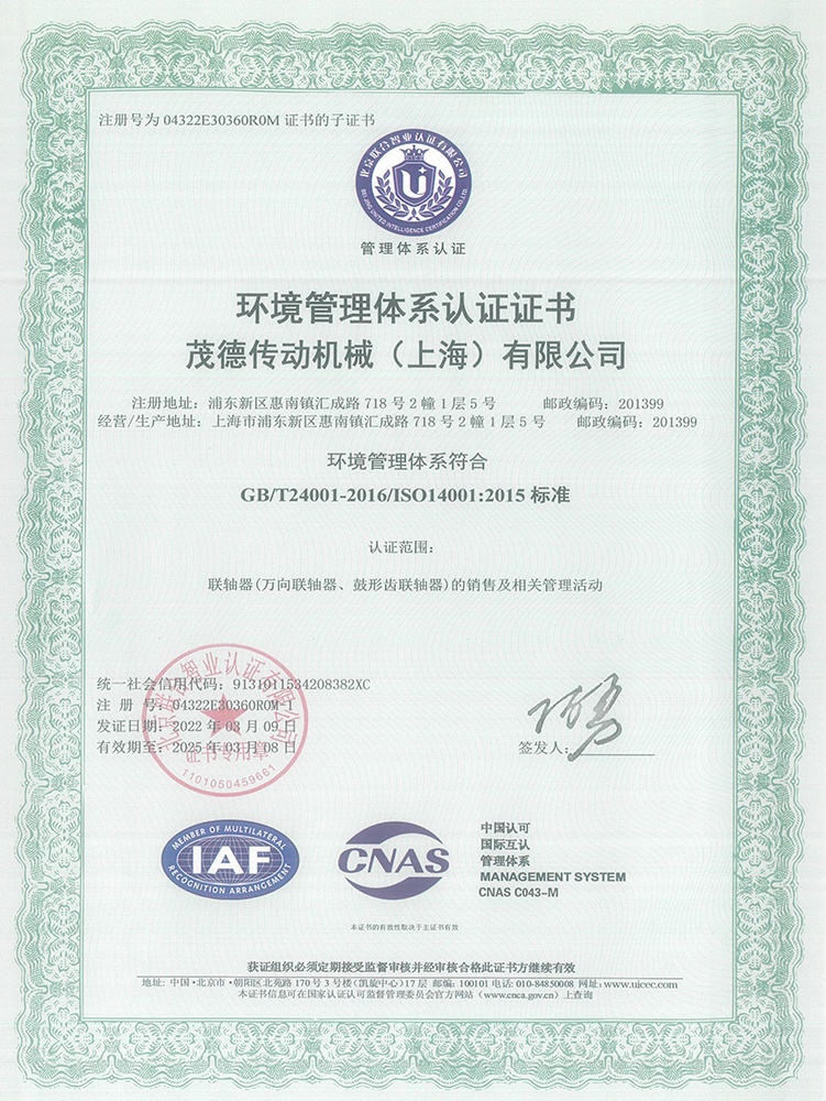 隨著公司及市場的不斷發展,2017年茂德傳動機械(嘉興)有限公司成立,進一步擴大生產基地、升級生產設備及提高研發制造力度。